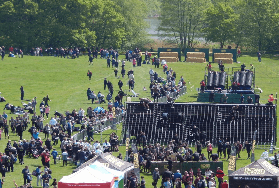 There’s over 35 military style obstacles, thousands of muddy participants, an event village, food and drink and live music to keep th spectators occupied.